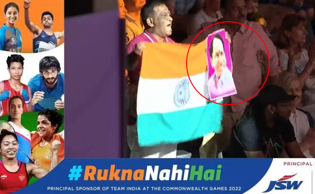 बर्मिंघम राष्ट्रमंडल खेलों (Birmingha Commonwealth Games) में रविवार को भारत की स्टार महिला मुक्केबाज निकहत जरीन (Nikhat Zareen) ने जब गोल्ड मेडल जीता, पूरा देश उनकी इस सफलता पर खुशी से झुम उठा. महिलाओं की 50 किग्रा (लाइट फ्लाईवेट) वर्ग में स्वर्ण पदक जीतने के बाद जरीन ने तिरंगा लहरा कर देश के प्रति अपने प्यार को गर्व के साथ दुनिया को दिखाया. लेकिन आयोजन स्थल पर स्पोर्ट्स अथॉरिटी ऑफ तेलंगाना स्टेट के चेयरमैन ए वेंकटेश्वर रेड्डी निकहत जरीन की नहीं बल्कि तेलंगाना के सीएम केसीआर (Telengana CM KCR) की फोटो लहराते नजर आए.
