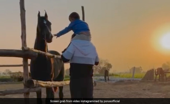 सपना चौधरी और वीर साहू का बेटा पोरस अक्टूबर में 2 साल का हो जाएगा. सपना के बेटे की एक झलक देखने के लिए फैन्स उनका बेसब्री से इंतजार कर रहे हैं. वहीं हाल ही में सपना के बेटा का एक वीडियो सोशल मीडिया पर जमकर वायरल हो रहा है. इस वीडियो में देखा जा सकता है की पोरस पिता वीर के कंधों पर बैठ खेलते दिखाई दे रहे हैं. साथ ही घोड़े का सिर भी सहरा रहे हैं.