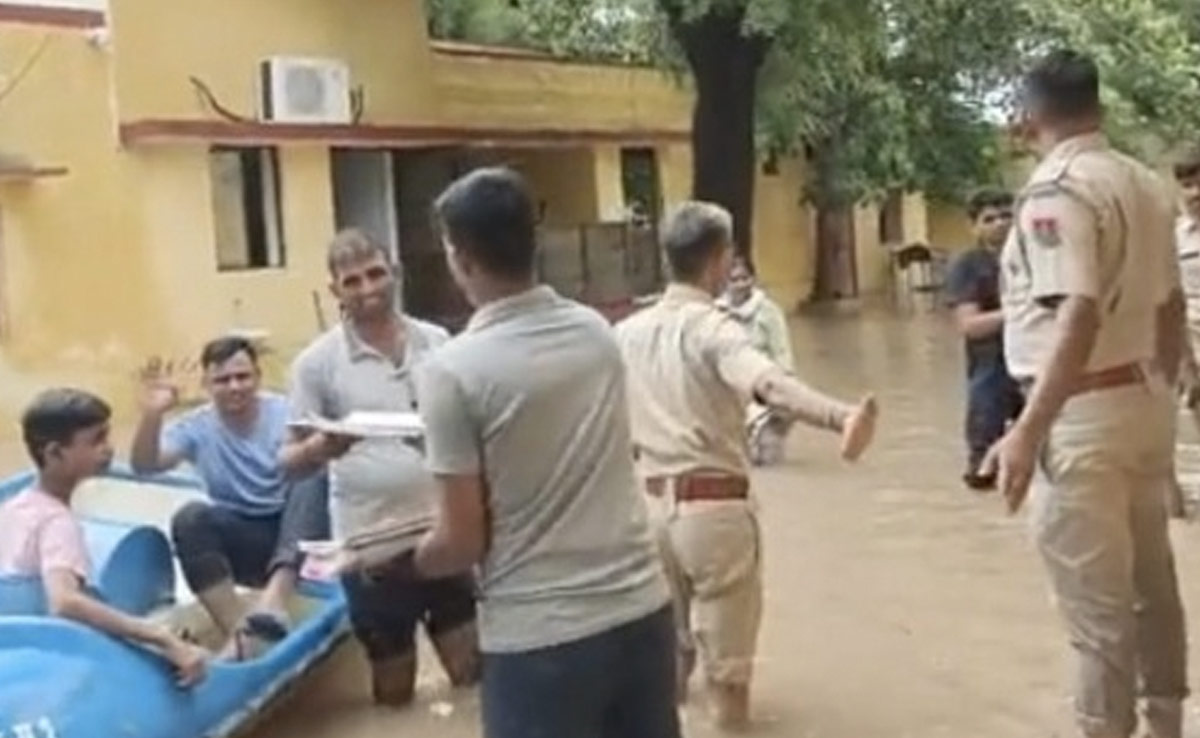 जोधपुर सम्भाग के पाली जिले के तखतगढ़ कस्बे के स्थानीय पुलिस थाने में सोमवार को जलभराव की समस्या उस समय पुलिस के लिए सिरदर्द बन गई, जब एक आरोपी को कोर्ट ले जाने के लिए नाव मंगवानी पड़ गई. बताया जा रहा है कि सोमवार को पाली जिले के बांकला बांध के ओवरफ्लो होने से थाना परिसर के पास तालाब भी उफान पर था, जिसके कारण स्थानीय थाना परिसर चारों ओर से पानी से घिरने से जलमग्न हो गया. थाने के बेरिक से लेकर मुंशी कक्ष में भी पानी भर गया.