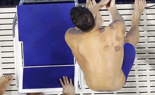 माइकल फेल्प्स की पीठ और कंधों पर हैं कप थैरेपी के निशान.