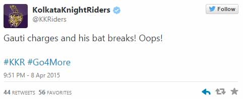कोलकाता नाइट राइडर्स ने अपने ट्वीट में इसे सीधे सीधे गंभीर का 'ऊप्स मोमेंट' कहा।