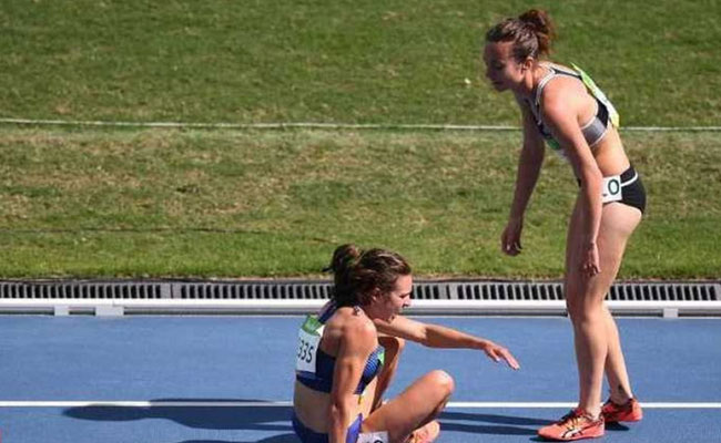 रियो ओलंपिक में 5,000 मीटर की दौड़ के दौरान अमेरिका और न्यूजीलैंड की दो एथलीटों ने बेहद प्रेरणादायक नजारा पेश करते हुए सबका दिल जीत लिया. उन्होंने इस प्रतियोगिता के दौरान खेल की असल भावना का उदाहरण पेश किया. दरअसल, हुआ यूं कि अमेरिका की एब्बे डी एगोस्टिनो और न्यूजीलैंड की निक्की हैम्बलिन इस रेस में ट्रैक पर दौड़ते हुए जब 3,000 मीटर की दूरी तक पहुंची तो एग्नोस्टिनो हैम्बलिन की हील से टकरा गईं. इसके बाद दोनों ही धावक जमीन पर गिर गईं.