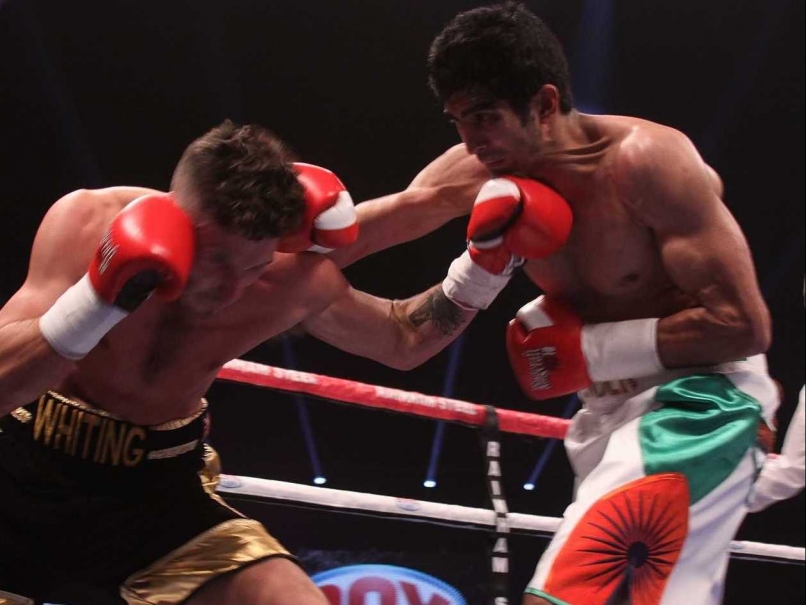 वाइटिंग को पंच मारते विजेंदर सिंह (फाइल फोटो)इससे पिछले महीने अपने पदार्पण मुकाबले में विजेंदर ने सोनी वाइटिंग के खिलाफ तकनीकी नॉकआउट के जरिये जीत दर्ज की थी।