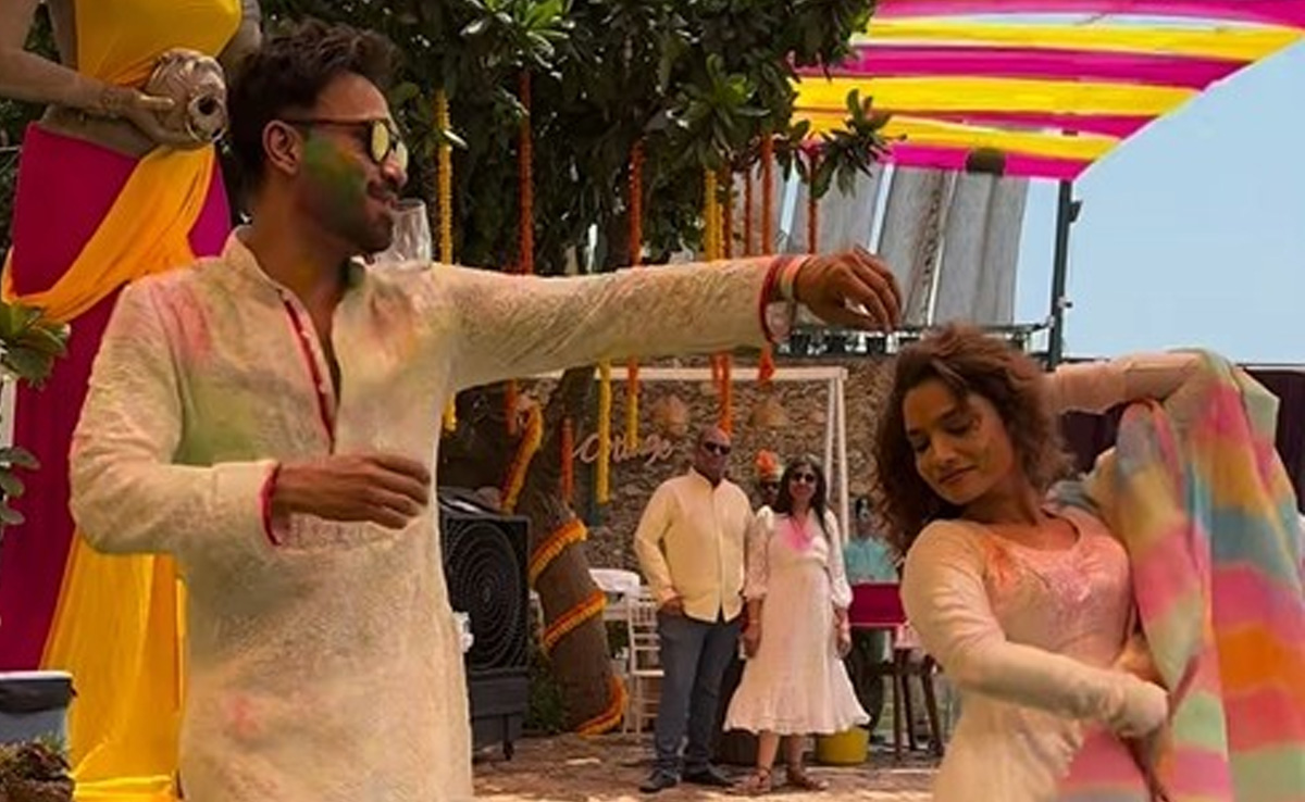 होली के मौके पर अंकिता लोखंडे और विक्की जैन का एक नया वीडियो वायरल हो रहा है. घबराइए मत इसमें कोई नया झगड़ा नहीं हो रहा बल्कि दोनों मस्ती में नाचते और झूमते नजर आ रहे हैं. वीडियो में आप देखेंगे कि पहले अंकिता अकेले डांस कर रही थीं फिर हाथ में गिलास लिए विक्की जैन आते हैं और साथ में नाचने लगते हैं. इस बीच वो गिलास के साथ भी एक डांस स्टेप करते हैं जो कि अब इंटरनेट पर वायरल हो सकता है. विक्की ने बड़े ही स्टाइल से कंधे पर गिलास फंसाया और अंकिता के साथ कदम से कदम मिला कर नाचने लगे.