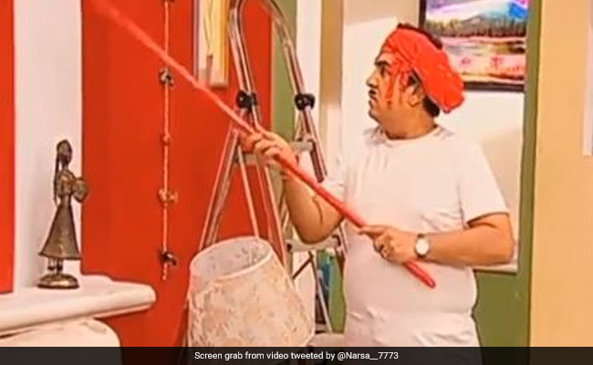 ट्विटर पर शेयर हुआ ये वीडियो मशहूर और खासकर बच्चों के पसंदीदा शो ‘तारक मेहता का उल्टा चश्मा' का है. वीडियो में शो के मुख्य किरदार जेठालाल दीवाली के पहले घर की सफाई करते नजर आ रहे हैं. हाथों में लंबा सा झाड़ू पकड़े जेठालाल सिलिंग और घर की दीवारों से डस्ट निकालते दिखते हैं. सफाई करते-करते जेठालाल की हालत पतली हो जाती है.