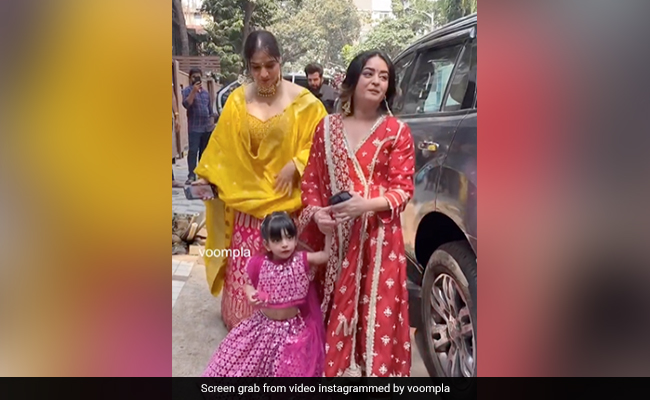 हाल में माही विज और जय भानुशाली अपनी किसी दोस्त की शादी में पहुंचे थे. इस मौके पर उनकी बेटी तारा भी उनके साथ नजर आईं. इस दौरान का वीडियो इंस्टाग्राम पर सामने आया है. इस वीडियो में सभी की नजरें जय और माही की क्यूट बेटी तारा पर जाकर थम गईं. पिंक कलर के झिलमिलाते से लहंगे में तारा बेहद प्यारी दिख रही हैं. तारा अपनी मम्मी माही के साथ पैपाराजी के लिए पोज भी करती हैं. इस दौरान माही रेड कलर की अनारकली ड्रेस में नजर आ रही है. उनके साथ वीडियो में एक्ट्रेस और बिग बॉस की एक्स कंटेस्टेंट आरती सिंह भी हैं.