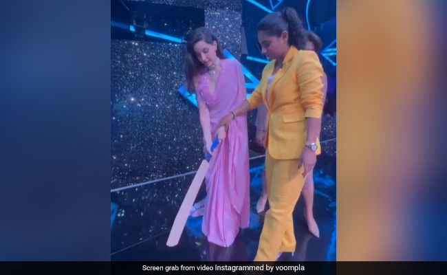 बॉलीवुड एक्ट्रेस नोरा फतेही इन दिनों टीवी रियालिटी शो डांस दीवाने जूनियर में बतौर जज नजर आ रही हैं. इस दौरान उनके कई डांसिंग मूव्स और ग्लैमरस अंदाज देखने को मिलता है. लेकिन इस बार आपकी फेवरेट नोरा फतेही डांस नहीं बल्कि क्रिकेट खेलती नजर आ रही हैं. इंस्टाग्राम पर उनका वीडियो तेजी से ट्रेंड कर रहा है, जिसमें नोरा भारतीय महिला क्रिकेट टीम की पूर्व कप्तान मिताली राज के साथ क्रिकेट खेलती नजर आ रही हैं और साड़ी में ही लंबे-लंबे चौके छक्के लगा रही हैं.