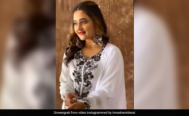 हाल ही में अपने नागिन अवतार से फैंस के होश उड़ा देने वाली एक्ट्रेस रश्मि देसाई एक बार फिर सुर्खियों में हैं. इस बार रश्मि देसाई का बेहद खूबसूरत इंडियन लुक फैंस को दीवाना बना रहा है. हाल ही में रश्मि देसाई ने अपने ऑफिशियल इंस्टा हैंडल पर अपने शूट के लिए तैयार होते हुए का एक वीडियो शेयर किया है. वीडियो में रश्मि चेयर पर बैठे हुए अपना मेकअप करा रही हैं. पीछे मेकअप आर्टिस्ट नजर आ रहे हैं. वीडियो में रश्मि माधुरी दीक्षित के गाने 'बड़ी मुश्किल बाबा बड़ी मुश्किल' में क्यूट अदाएं देते हुए दिखाई दे रही हैं. और फिर अगले ही पल नजर आता है रश्मि देसाई का बेहद ही खूबसूरत इंडियन लुक. इस वीडियो में रश्मि व्हाइट सूट पहने हुए नजर आ रही हैं. सूट में ब्लैक कलर की रेशम की कढ़ाई की हुई है. माथे पर सिल्वर कलर की बिंदी और कानों में सिल्वर कलर के बड़े झुमके रश्मि की खूबसूरती पर चार चांद लगा रहे हैं.