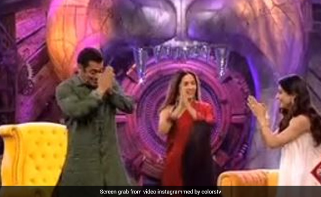 इंस्टाग्राम पर शेयर हुए ‘शनिवार का वार' एपिसोड के प्रोमो में सलमान खान को रश्मिका मंदाना और नीना गुप्ता के साथ अल्लू अर्जुन की सुपरहिट फिल्म पुष्पा के गाने पर डांस करते देखा जा सकता है. फिल्म पुष्पा की एक्ट्रेस रश्मिका मंदाना बिग बॉस 16 के सेट पर पहुंची हैं और वह सलमान के साथ फिल्म के गाने ‘सामी-सामी' पर डांस करती नजर आती हैं. फिल्म पुष्पा के इस गाने पर सलमान के कमाल के स्टेप्स देख कर रश्मिका स्टेज पर भी उनके आगे हाथ जोड़ती नजर आती हैं. लुक्स की बात करें तो व्हाइट कलर के लहंगे में रश्मिका बेहद खूबसूरत नजर आ रही हैं. वहीं सलमान खान ग्रीन कलर के एम्ब्रॉयडरी वाले कुर्ते में काफी हैंडसम नजर आ रहे हैं. रश्मिका को अपने बीच पाकर शो के कई कंटेस्टेंट्स भी फिल्म पुष्पा के डायलॉग्स बोलते और फिल्म से अल्लू अर्जुन का सिग्नेचर स्टेप करते दिखाई देते हैं.