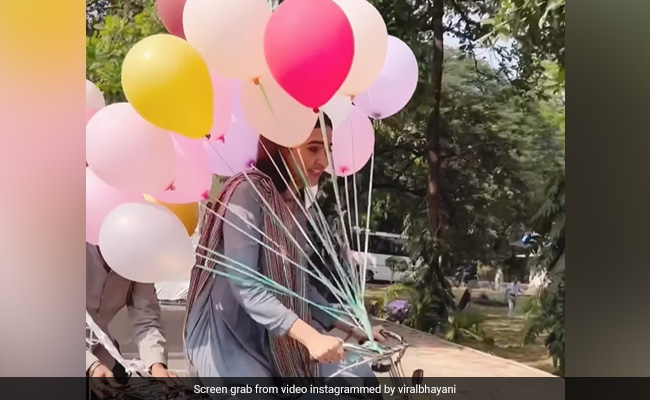 विरल भियानी के इंस्टाग्राम अकाउंट से शेयर हुए इस वीडियो में देखा जा सकता है कि तेजस्वी प्रकाश एक गुब्बारे वाले की साइकिल लेकर राइड करने लगती हैं. साइकिल पर रंग-बिरंगे गुब्बारे और सीट पर बैठी तेजस्वी बेहद खूबसूरत नजर आ रही हैं. तेजस्वी के लुक की बात कहे तो एक्ट्रेस ग्रे कलर के अनारकली सूट में नजर आती हैं, जिसके साथ उन्होंने मल्टीकलर का दुपट्टा कैरी किया है. वीडियो में तेजस्वी साइकिल चलाते हुए बेहद खुश नजर आती हैं. वह कैमरे की तरफ देखकर पोज भी करते हैं.