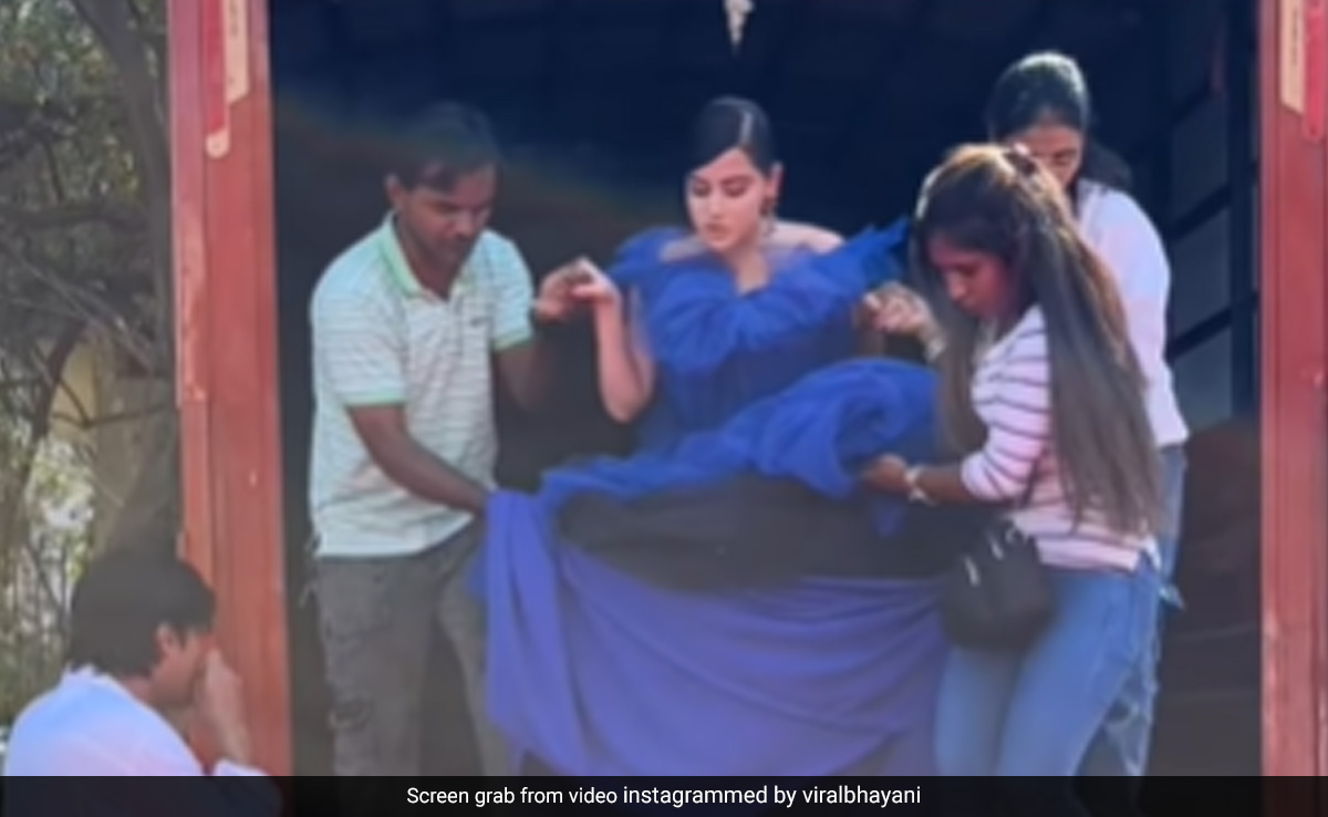 दरअसल, सोशल मीडिया सेंसेशन उर्फी जावेद ने शनिवार को एक बेहद भारी बड़े घेरेदार गाउन में एंट्री की. पैपराजी द्वारा शेयर किए गए वीडियो में उन्हें नीले रंग का गाउन पहने हुए एक टेम्पो से उतरते देखा जा सकता है. IANS की रिपोर्ट के अनुसार, एक्ट्रेस के पूरे आउटफिट को बनाने में दो-तीन महीने लगे और इसे 10-11 लोगों ने मिलकर बनाया है. वहीं कहा जा रहा है कि इस गाउन का वजन 100 किलो तक का है.