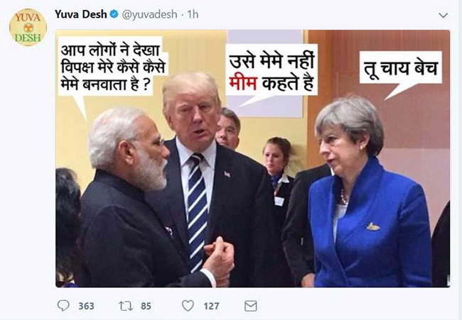 कांग्रेस को पीएम मोदी का मजाक बनाना खुद भारी पड़ गया. कांग्रेस के यूथ विंग ने एक पोस्ट के जरिये पीएम नरेंद्र मोदी को एक चाय वाला के रूप में पेश कर मजाक बनाना चाहा, मगर इससे कांग्रेस खुद अपने ही बुने जाल में फंस गई. मंगलवार को पार्टी के यूथ विंग ने पीएम मोदी, डोनाल्ड ट्रंप और ब्रिटेन की थेरेसा मे की फोटो पर आधारित एक मीम पोस्ट किया. इस मीम में पीएम मोदी के चाय बेचने पर मजाक उड़ाने की कोशिश की गई है. इसे लेकर अब भाजपा के तेवर कड़े दिख रहे हैं.
