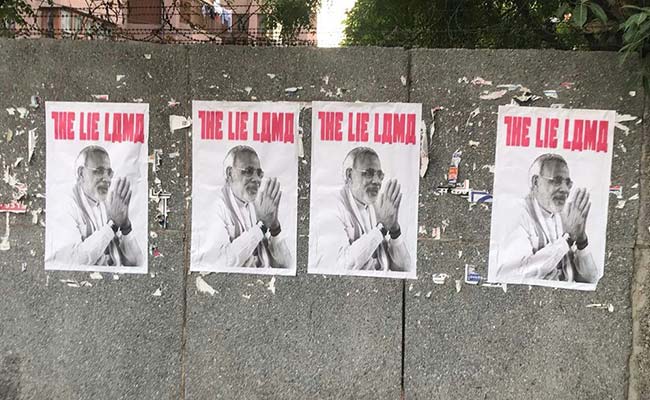 दिल्ली में कई जगहों पर चिपकाए गए 'द लाई लामा' लिखे पीएम मोदी के पोस्टर, मामला दर्ज