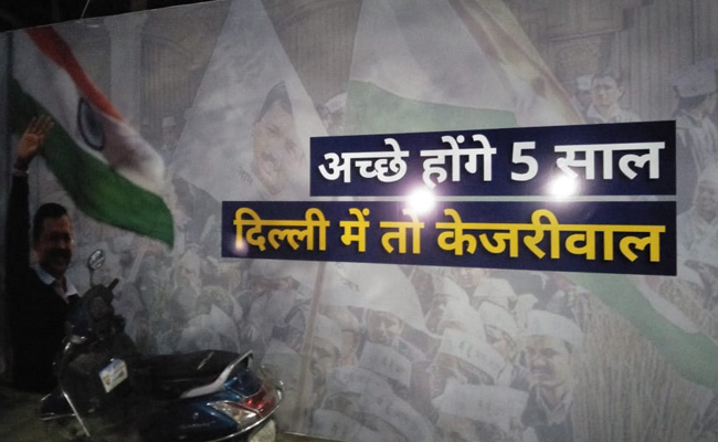 Delhi Election Result: चुनाव परिणाम आने से पहले ही आम आदमी पार्टी मुख्यालय के बाहर लगा नया पोस्टर, लिखा- अच्छे होंगे 5 साल...