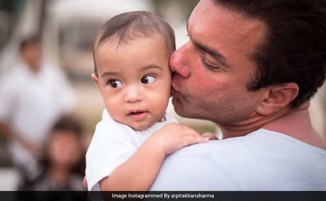 भांजे आहिल को 'बिगाड़' रहे हैं सलमान खान, बहन अर्पिता खान ने पोस्ट की तस्वीरें