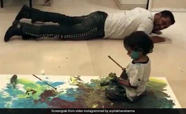 सलमान खान बिजी शेड्यूल के बीच फैमिली के साथ वक्त बिताना नहीं भूलते. सलमान खान की बहन अर्पिता खान शर्मा ने रविवार को एक वीडियो जारी किया है, जिसमें उनके बेटे आहिल शर्मा मामू की मदद से अपनी पहली पेंटिंग बना रहे हैं.