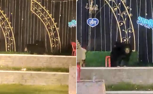 इस वीडियो में आप देख सकते हैं कैसे मादा भालू अपने दो बच्चों को पीठ पर बैठे सीधे शादी के स्टेज पर एंट्री करती है. वो इधर-उधर देखते हुए एक बार पूरे स्टेज का चक्कर लगाती है और माहौल का जायज़ा लेती है.