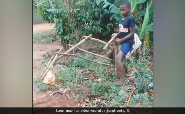 लड़के ने लकड़ी के डंडों से अस्थाई बुलडोजर (bulldozer) बनाया है. इसे ट्विटर पर इंजीनियरिंग आविष्कार नामक एक पेज द्वारा शेयर किया गया था और इसे पहले ही दो मिलियन बार देखा जा चुका है.