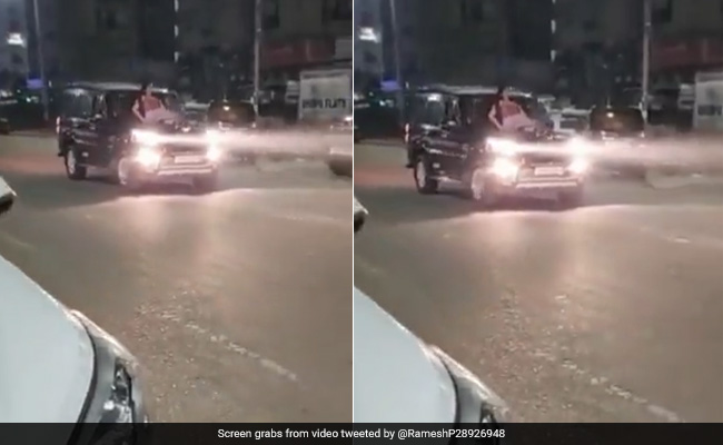 Stunt on Scorpio Car: वीडियो में युवती काले रंग की स्कॉर्पियो कार के बोनट (Scorpio Car Bonnet) पर बैठी हुई दिखाई दे रही है और कार धीरे-धीरे आगे बढ़ रही है.