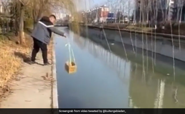 बिल्ली की जान बचाने के लिए शख्स ने किया जुगाड़, नदी से बाहर निकालने के लिए किया कुछ ऐसा - देखें Video