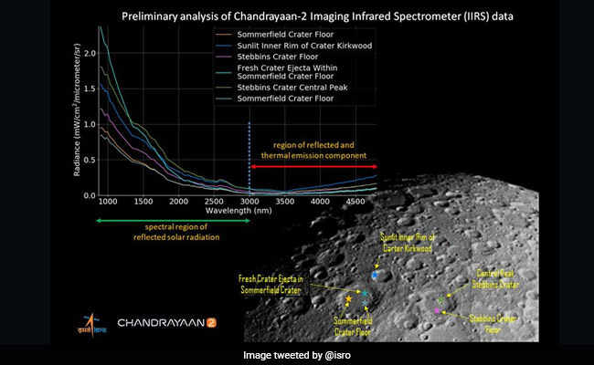 स्पेस एजेंसी इसरो (Indian Space Research Organisation- ISRO) ने चंद्रमा की सतह की पहली जगमगाती हुई तस्वीर शेयर की है. इसे चंद्रयान-2 के इमेजिंग इन्फ्रारेड स्पेक्ट्रोमीटर (IIRS) पेलोड द्वारा कैप्चर किया गया. इसरो ने कहा कि उसने चांद की सतह पर स्पेक्ट्रोस्कोपिक अध्ययन शुरू कर दिया है. इसरो ने ट्विटर पर तस्वीर शेयर की और कहा कि IIRS को संकीर्ण और सन्निहित स्पेक्ट्रल चैनलों में चंद्र सतह से परावर्तित सूर्य के प्रकाश को मापने के लिए डिज़ाइन किया गया था.
