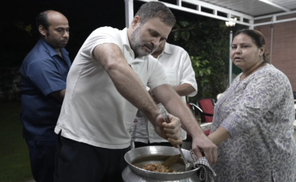 एक विशेष खाना पकाने की क्लास : शेफ लालू यादव ने प्रशिक्षु राहुल गांधी को बिहार की प्रसिद्ध मीट डिश चंपारण मटन को पकाने का तरीका सिखाया. कांग्रेस नेता ने शनिवार को कुकिंग का वीडियो जारी किया.