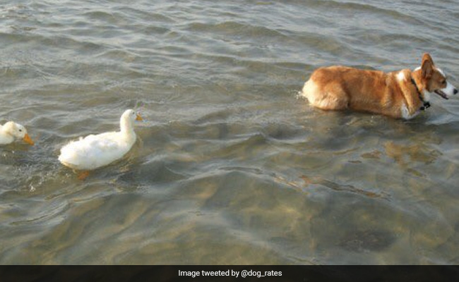 बत्तख के बच्चों को स्वीमिंग सिखाने के लिए नदी में कूद गया कुत्ता, वायरल हुईं PHOTOS