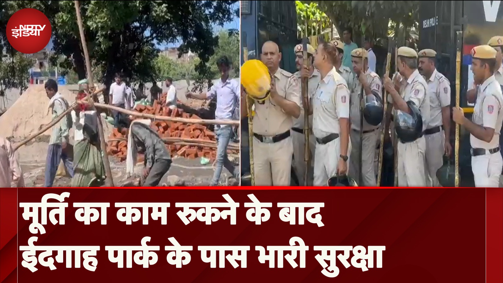 रानी लक्ष्मीबाई की मूर्ति ईदगाह पार्क में लगाने का काम फिलहाल रोक दिया गया है. ईदगाह पार्क के पास पुलिस बल की संख्या बढ़ा दी गई है. बैरिकेडिंग और भी टाइट की गई है. पार्क के बगल से गुजरने वाली सड़क पर यातायात पूरी तरह से रोक दिया गया है.