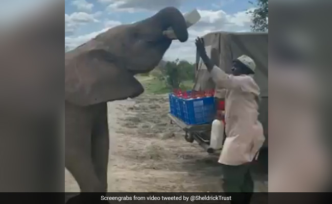 बोतल मुंह से लगाकर यूं दूध पीने लगा हाथी, देखता रह गया शख्स, देखें मज़ेदार Video