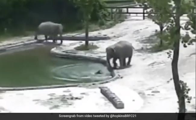 हाथी का बच्चा खेलते-खेलते पानी से भरे पूल में गिर गया, फिर दो हाथियों ने पानी में कूदकर ऐसे बचाई उसकी जान - देखें Video