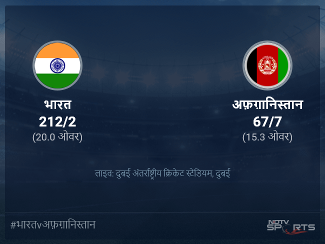 भारत और अफ़ग़ानिस्तान के बीच दुबई अंतर्राष्ट्रीय क्रिकेट स्टेडियम, दुबई में खेले जा रहे मैच की कमेंट्री और फुल स्कोरकार्ड देखें.