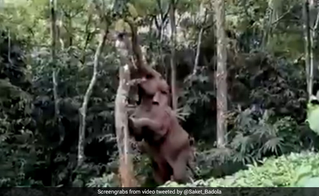 कटहल खाने के चक्कर में पेड़ पर चढ़ा हाथी, वीडियो हुआ वायरल