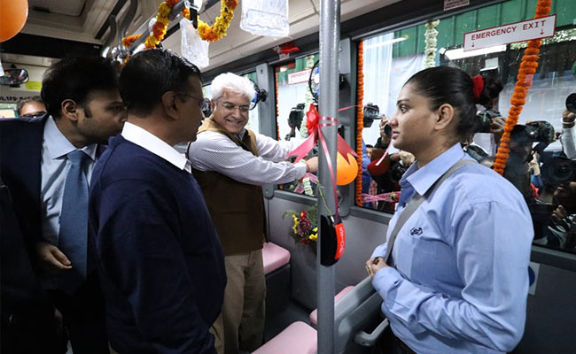 दिल्ली : मुख्यमंत्री अरविंद केजरीवाल ने 100 नई लो फ्लोर एसी बसों को दिखाई हरी झंडी