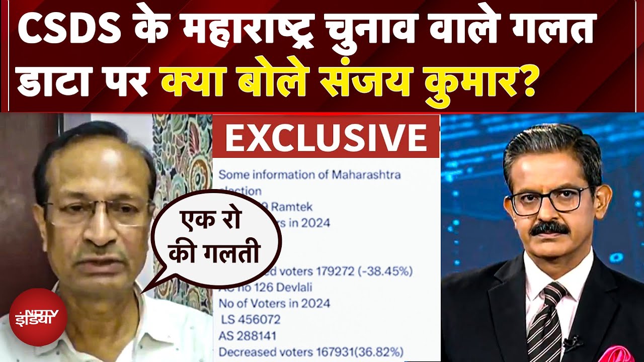 सीएसडीएस के प्रमुख संजय कुमार ने कहा है कि मैं महाराष्ट्र चुनावों के संबंध में पोस्ट के लिए ईमानदारी से माफी मांगता हूं. 2024 के लोकसभा और 2024 के विधानसभा के आंकड़ों की तुलना करते समय गलती हुई. हमारी डेटा टीम की तरफ से गलत पढ़ा गया था.