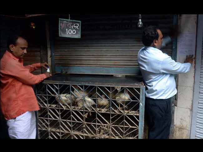 एमएनएस कार्यकर्ताओं ने जैन सोसायटी के बाहर लगाई चिकन की दुकान