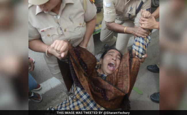 लापता JNU छात्र नजीब अहमद के मामले में प्रदर्शन करने गई मां से पुलिस की बदसलूकी