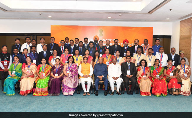 राष्ट्रपति रामनाथ कोविंद ने गुरुवार को शिक्षक दिवस (Teachers' Day) के अवसर पर विज्ञान भवन में 46 शिक्षकों को राष्ट्रीय पुरस्कार (National Teachers Award) से सम्मानित किया. पंजाब, हरियाणा, हिमाचल प्रदेश, सिक्किम, राजस्थान और झारखंड के शिक्षकों को उनके नवाचार और कक्षाओं को रुचिकर बनाने के लिए पुरस्कार से सम्मानित किया गया.