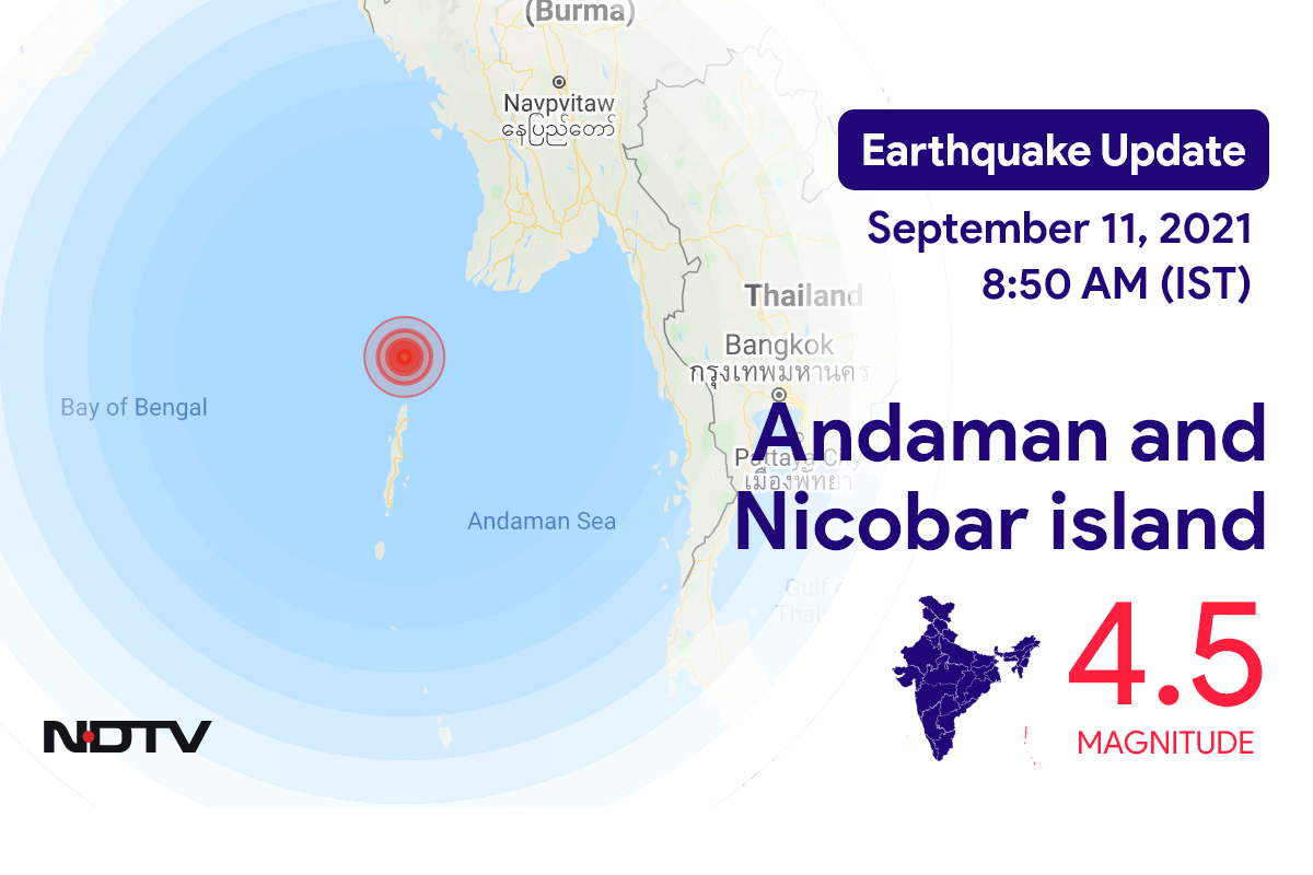 नेशनल सेंटर फॉर सिस्मोलॉजी के मुताबिक, शुक्रवार सुबह Campbell Bay में Andaman and Nicobar island के निकट रिक्टर पैमाने पर 4.5 तीव्रता वाले भूकंप के झटके महसूस किए गए.
