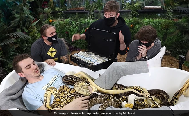 लोकप्रिय यूट्यूबर (YouTuber) मिस्टर बीस्ट (MrBeast) अपने एक और हैरान कर देने वाले वीडियो के साथ वापस आ गए हैं. पुरस्कार राशि जीतने के लिए उन्होंने अपने दोस्तों और साथ काम करने वालों को इस अजीब स्टंट को जीतने का चैलेंज भी दिया. इस चैलेंज में उन्हें सांपों से भरे बाथटब में बैठना था.