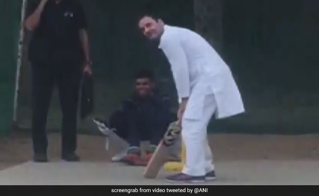 हेलीकॉप्टर की आपात लैंडिंग के बाद क्रिकेट मैदान में बल्लेबाज बन गए राहुल गांधी, देखें-VIDEO