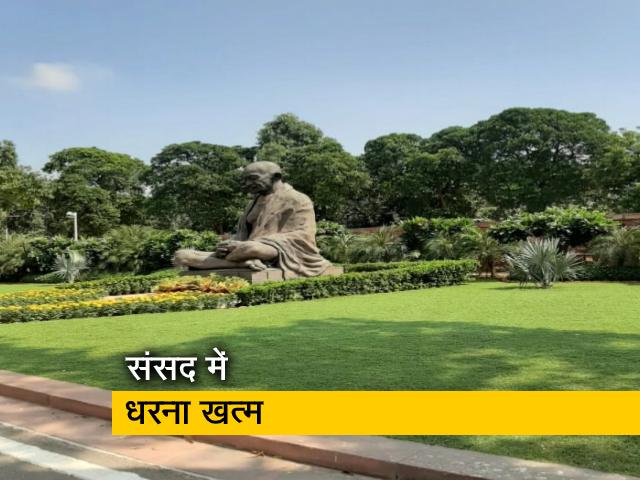 विपक्ष का राज्यसभा की कार्यवाही के बहिष्कार का फैसला, निलंबित सांसदों का धरना खत्म