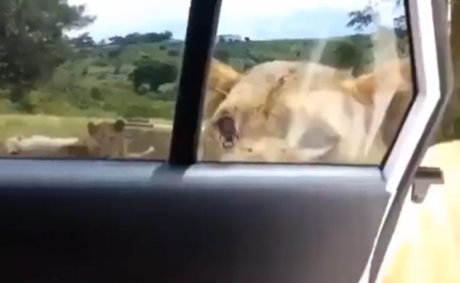 जंगल में शेरों को देखने पहुंचे टूरिस्ट, शेरनी ने मुंह से खोल दिया कार का दरवाजा और फिर...