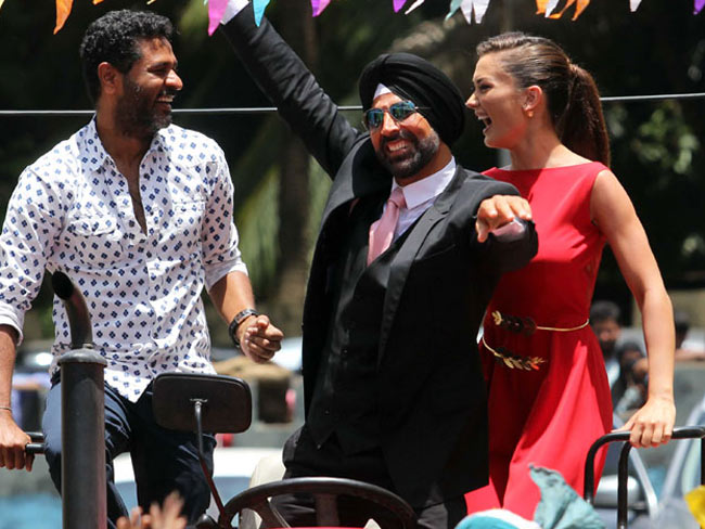 मुंबई में फिल्म 'सिंह इज ब्लिंग' का ट्रेलर बहुत ही धूम-धड़ाके से जारी हुआ। अक्षय कुमार और एमी जैक्सन ट्रेलर रिलीज करने ट्रैक्टर पर आए। इस मौके पर फिल्म की पूरी टीम उपस्थित थी।