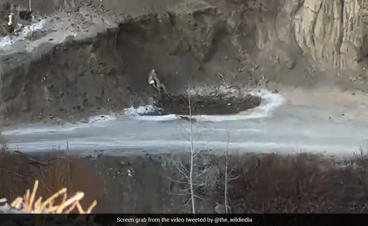 पर्यटकों के एक समूह द्वारा कैद की गई इस क्लिप में हिमाचल प्रदेश की स्पीति घाटी में सड़क पर एक मायावी शिकारी को आराम से टहलते हुए दिखाया गया है.