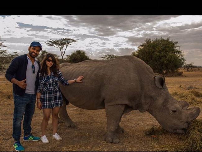 क्रिकेटर रोहित शर्मा हाल ही में मंगेतर रितिका के साथ अफ्रीका टूर पर गए थे। वहां उन्होंने दुर्लभ प्रजाति के नॉर्दर्न व्हाइट राइनोज (गैंडा) के शिकार को रोकने के लिए आयोजित कार्यक्रम में भाग लिया।