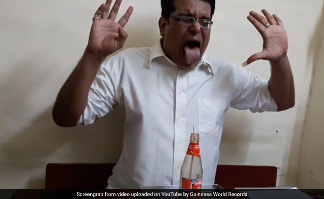 मुंबई के रहने वाले दिनेश शिवनाथ उपाध्याय ने टामाटर सॉस की बोटल को पूरी पीकर खत्म कर दी. जी हां, स्टॉ की मदद से उन्होंने 25.37 सेकंड्स में पूरी बॉटल खत्म कर दी.