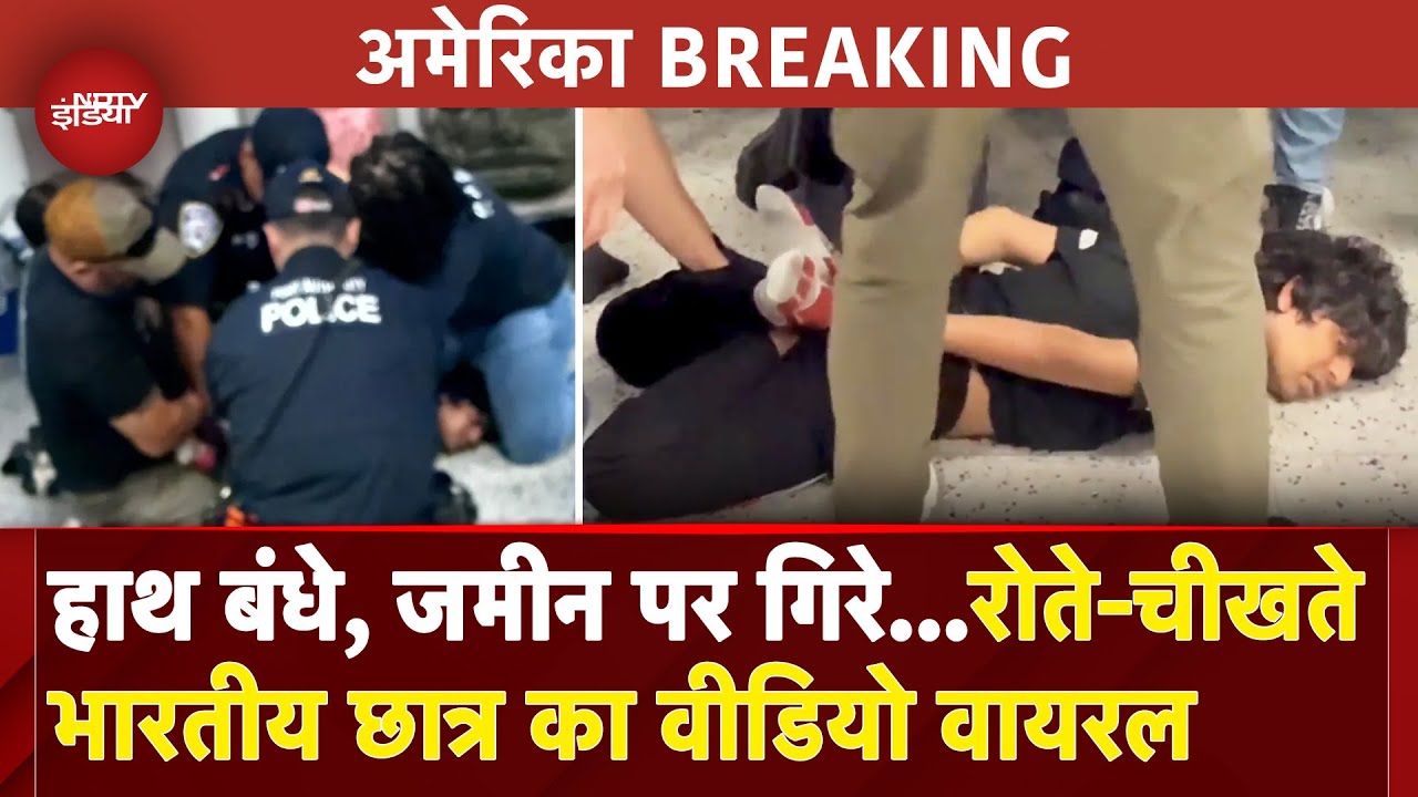 परेशान करने वाली फुटेज में छात्र को जमीन पर गिरा हुआ दिखा रहा है और कम से कम चार अमेरिकी अधिकारियों ने उसे पकड़ रखा है, जिनमें से दो ने अपने घुटने उसकी पीठ पर रखे हैं.