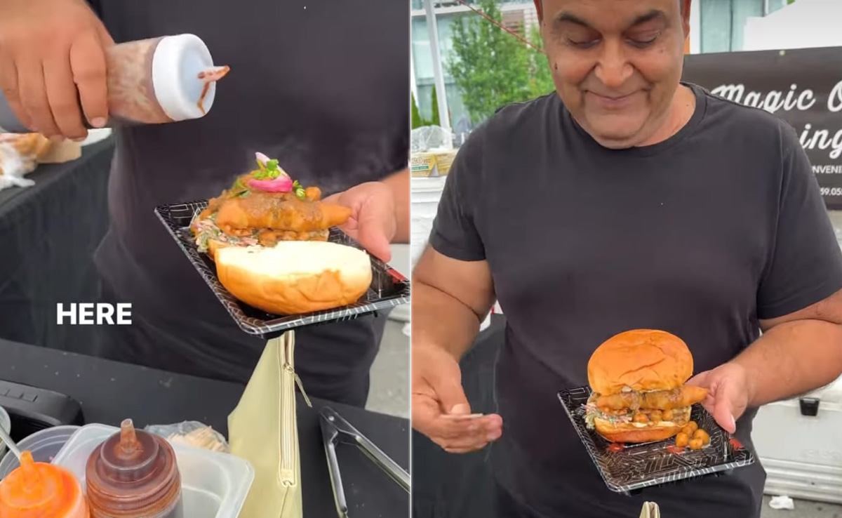 टोरंटो में फूड वेंडर ने बनाया स्मैश्ड समोसा बर्गर, लोग बोले- भाई समोसे को तो छोड़ दो, लाखों लोग देख चुकें हैं वीडियो