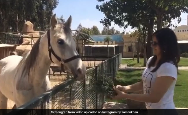 घोड़े को चारा खिलाने से डरीं जरीन खान, बोलीं- हाथ चबा गया तो...देखें Video