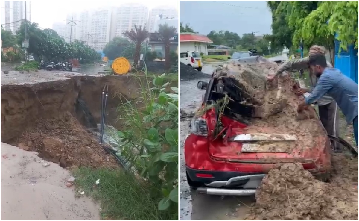 सोशल मीडिया पर जो वीडियो सामने आया है, उसमें साफ दिख रहा है कि ऊंची इमारतों के बेसमेंट पूरा का पूरा धंसा हुआ है और उसमें पानी जा रहा है. इसी बेसमेंट में गाड़ियां खड़ी थी, जैसे ही बेसमेंट की मिट्टी धंसी लोगों की गाड़ियां भी गड्ढे में समा गई. इस दौरान कई लोगों की कारें बुरी तरह चकनाचूर हो गई, कई कारें पिचक गई. जिसके बाद क्रेन बुलाकर उसकी मदद से गड्ढे से कारों को बाहर निकाला गया. लोग अपनी कारों को इतनी बुरी हालत में देख बेहद मायूस हुए. लोग अपनी कारों से मिट्टी हटाते दिखाई दे रहे हैं.